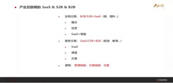 服务交易,比如旅游相关,教育相关的行业,很可能是从SaaS切进去,因为它本身行业的信息化程度相对会高一些。但是SaaS切进去一定会做很多增值服务。