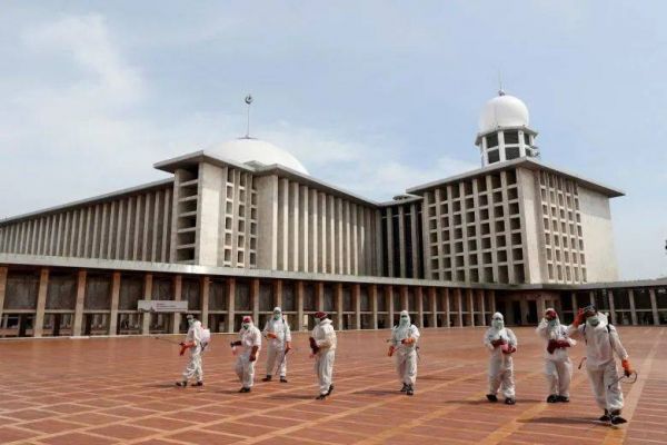 印尼最大的伊斯蒂赫拉尔清真寺在进行消毒