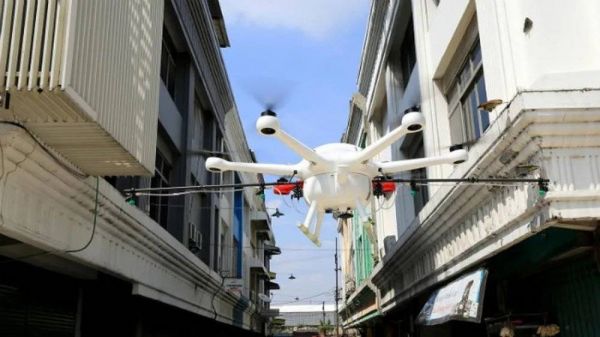 还有,印尼第二大城市泗水市用上了无人机,在主干道路喷洒消毒剂。这些无人机平时是用来给作物喷灭虫药的,现在被临时征用、改造成“消毒机”。