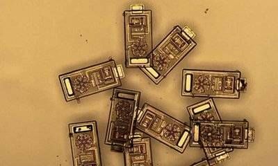 物理学家Paul McEuen,电子与计算机工程副教授Alyosha Molnar,和康奈尔大学博士后Alejandro Cortese博士共同设计了一个平台,用于生产他们的光无线集成电路(OWICs)——100微米大小的微型传感器,人眼只能看到一个小斑点,可能还没脸上的毛孔大。