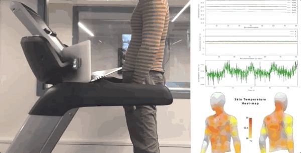 研究人员在健身房锻炼时对内置传感器的衣服进行了测试,让他们监测人体温度、心率和呼吸频率的变化。过程中研究人员可以观察到身体不同部位的温度变化,以及这些变化之间的关联。