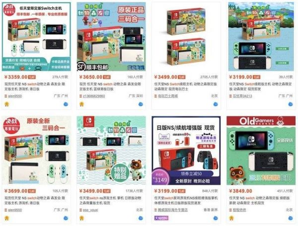 淘宝的情况也差不多。如果你以“Switch”为关键字进行搜索,大部分店家都会给出 3100 元~3500 元左右的定价;如果是动森限定机这类热门款式,更是能开价 4000 元。