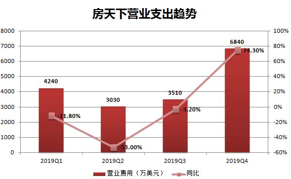 本季度,房天下的营业费用同比增长74.3%至6840万美元。