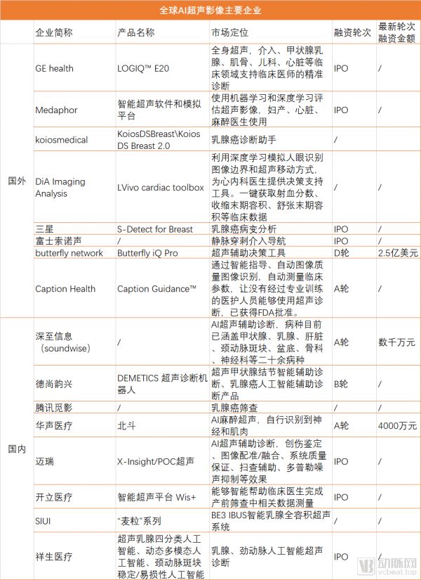 从表中主要的应用场景可以看出,虽然AI超声领域有强大的巨头布局,也有创业公司,但是应用场景的不同,他们没有构成直接竞争。