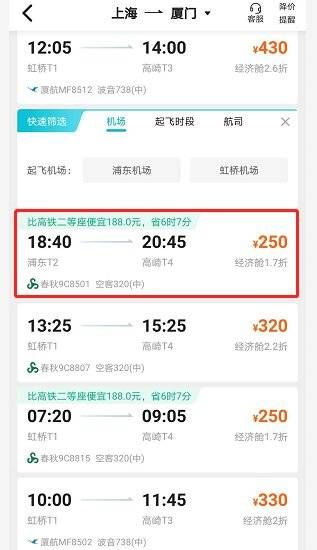 投资界查询各大OTA平台发现,今年五一期间,北京-三亚、上海-厦门等热门航线价格均有优惠,其中上海到厦门的航班在五一期间不含税最低只需250元,比高铁二等座还要便宜188元。