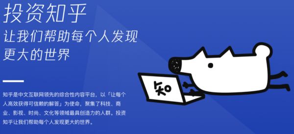 知乎是中文互联网领先的综合性内容平台。以「让每个人高效获得可信赖的解答」为使命,聚集了科技、商业、影视、时尚、文化等领域最具创造力的人群。投资知乎让我们帮助每个人发现更大的世界。