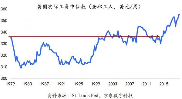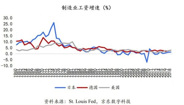 从布雷顿森林体系之后,确立了美元为本位的货币体系,直接改变了美国的行业格局,“美国梦”中制造业的分量逐渐变轻。而之后美国银行业和保险业的辉煌,可以迅速积累的个人财富,吸引了一大批社会精英加入。到2019年美国金融业达到巅峰水平,但是另一段数据则触目惊心,美国制造业就业仅占全部就业的8.4%,工资增长也是历史最低水平。试问,制造业如何不出走?制造业为何会回流?