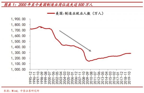 美国“制造回流”的本质,是期望通过这种方式提升本国制造业的就业人口。长期以来,美国在发展以核心科技为支撑的高端制造、信息服务业及现代农业时,虽然在技术上取得了全面领先,却放弃了自己的低端制造,同时也剥夺了大量普通工人的就业机会。