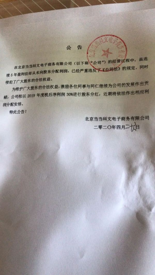 特此严正声明:当当网以及关联公司公章、财务专用章失控期间,任何人使用该公章、财务专用章签订的任何合同、协议以及具有合同性质的文件或其他任何书面文件,公司将不予承认。公章、财务章、财务部门章即日作废。