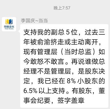 李国庆回应当当高管100%支持俞渝:谁当CEO由股东决定