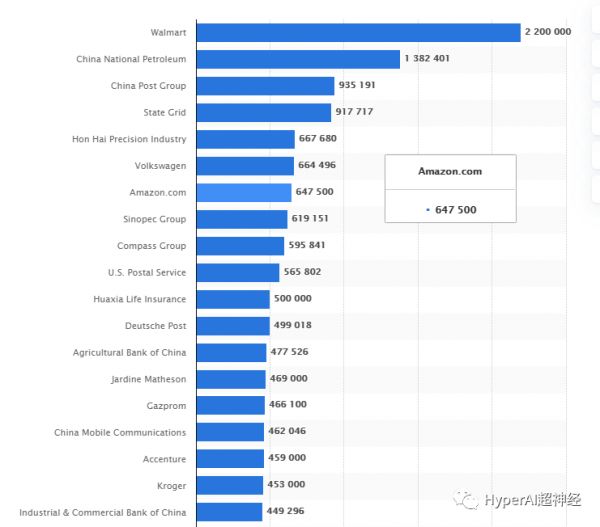 全球各大公司雇员人数统计(数据截止:2018 年)