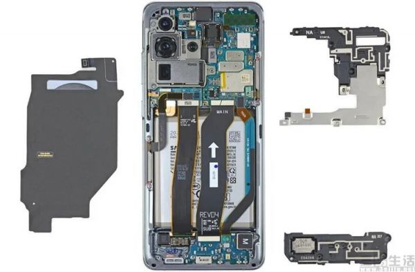 Galaxy S20Ultra的拆解结构,可以看到顶部扬声器体积不小