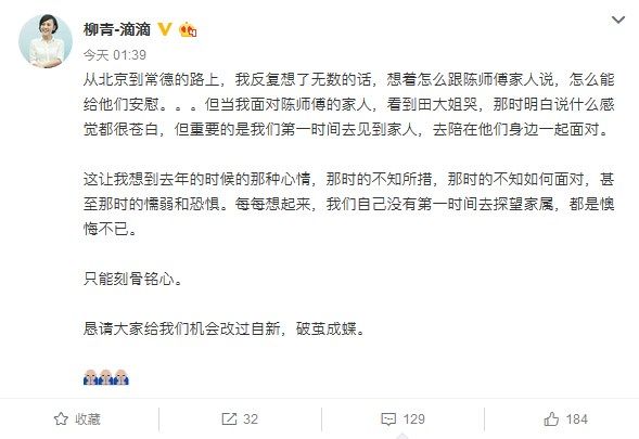 (原标题:滴滴柳青深夜发文:恳请大家给我们机会改过自新,破茧成蝶)
