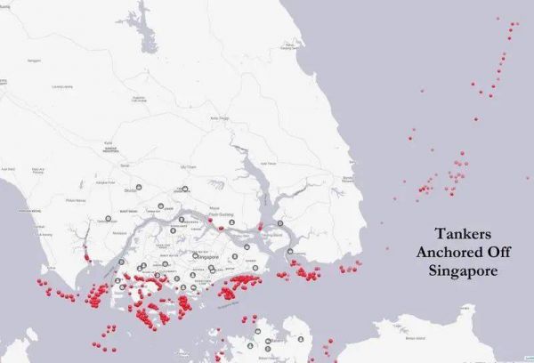 新加坡油品存储码头附近的狭窄的水路最近变得更加拥挤,大约有60艘油轮停靠在繁忙的海峡沿岸,远超平时的30至40艘。其中的一些船不是用来运油,而是储油,因为岸上油罐已经满了。船舶经纪商和贸易商说,现在卸货需要等两周左右,而平时只要4~5天。