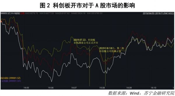 科创板开市时同样如此,2019年7月22日科创板首批25家公司上市,以及随后的8月8日第二批科创板公司上市,也都没有对A股造成实质性影响(见图2)。