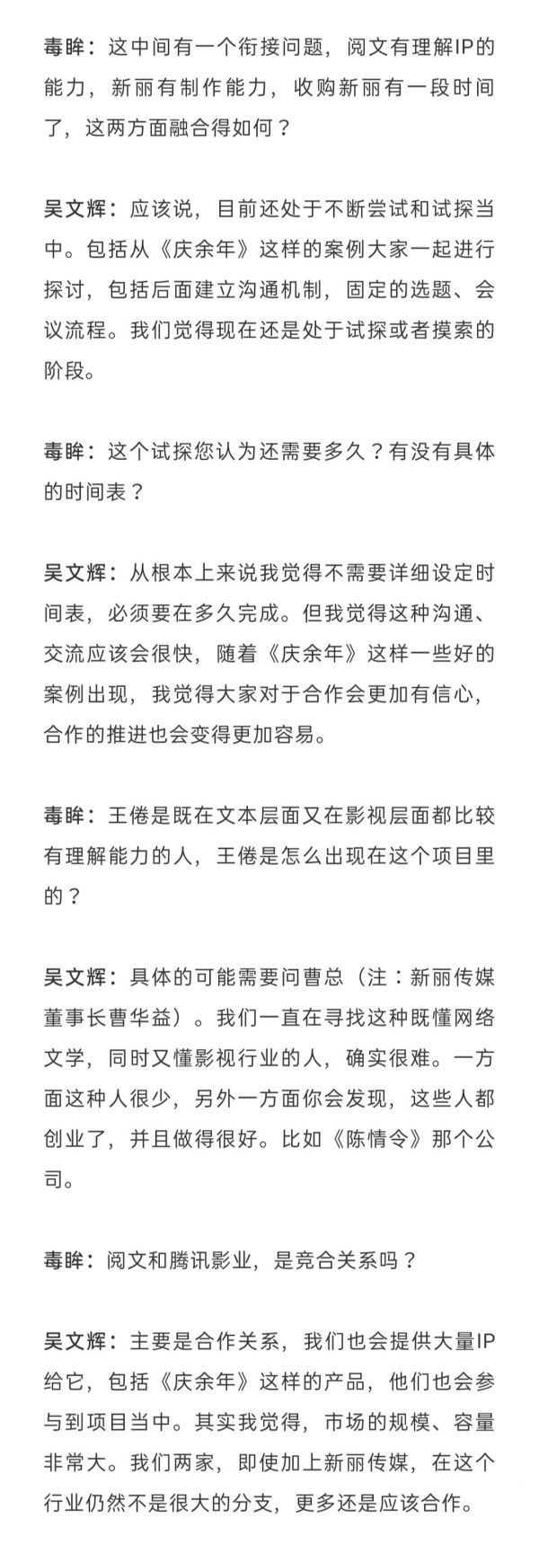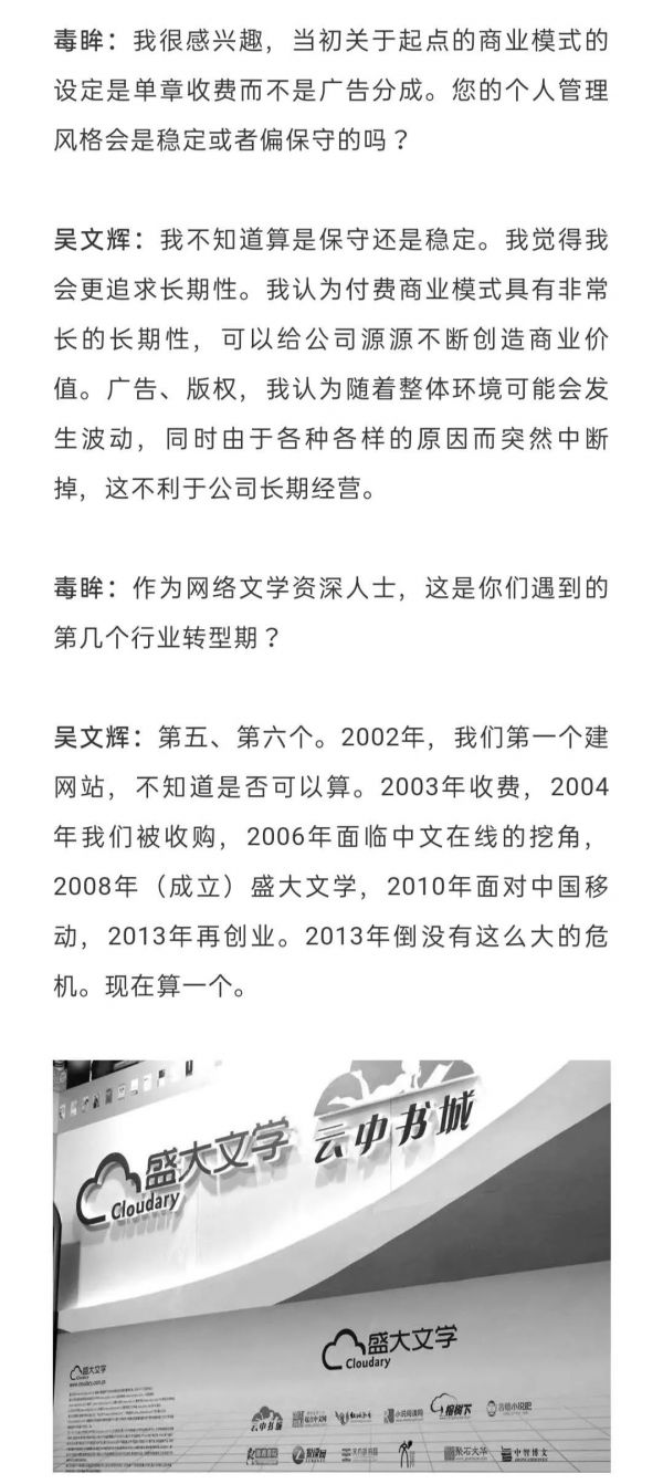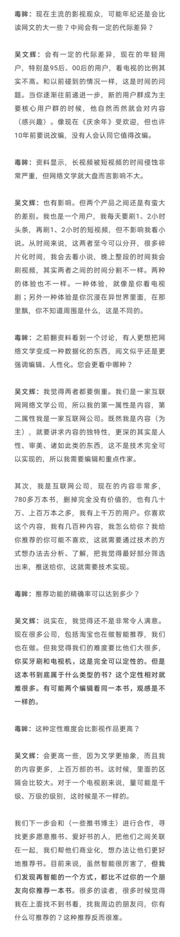 毒眸去年12月份采访了原阅文集团联席CEO吴文辉,以下为对话实录(经过编辑删改),供各位参考: