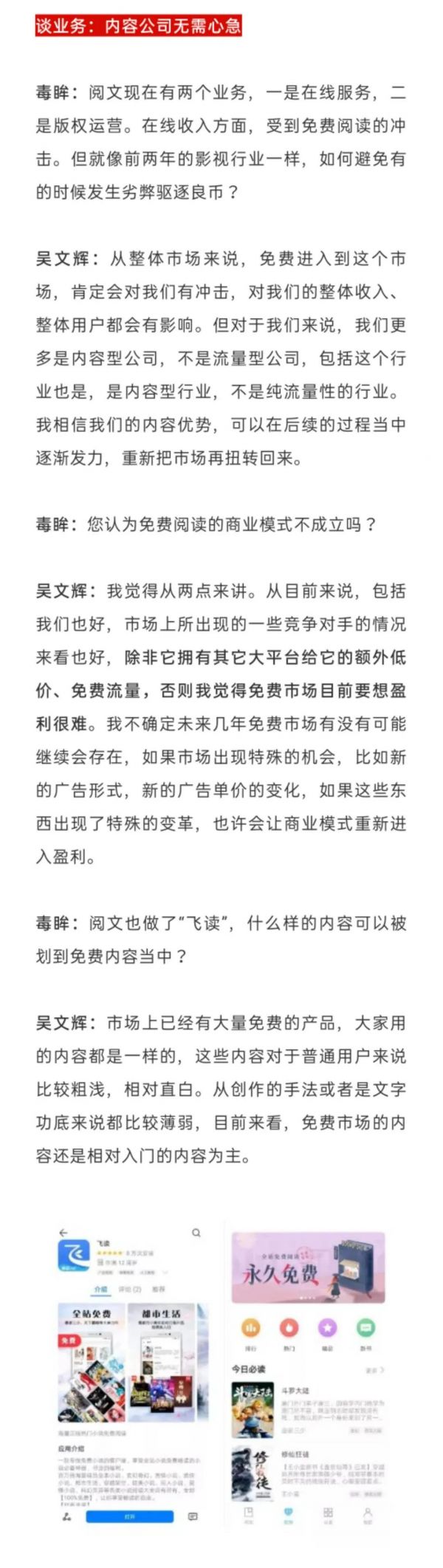 尽管在这份通稿中,吴文辉的退场被描述得非常体面,是荣退,还保留了董事会的席位,但坊间依然流传着他的离席是阅文高管团队和腾讯在免费还是付费阅读的核心战略上不和所致。