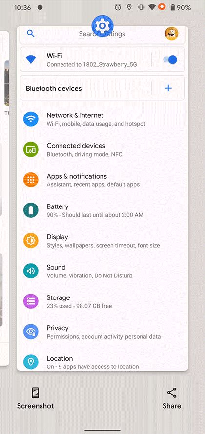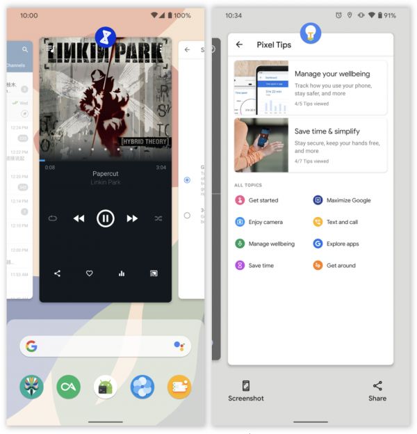 个人认为这个也许预示着 Android 11 多任务界面的进化方向,但底部的两个按钮功能究竟应该放什么显然还有待商榷。截图按钮可以直接截取当前任务卡片中的应用界面,比起伸手去够电源键和音量减的物理截图方案要简单快速许多,但截取的图片并不包含状态栏和底部导航栏;分享按钮其实也包含了截图功能,但它跳过了截图预览,点击后会直接截取图片并弹出分享菜单。