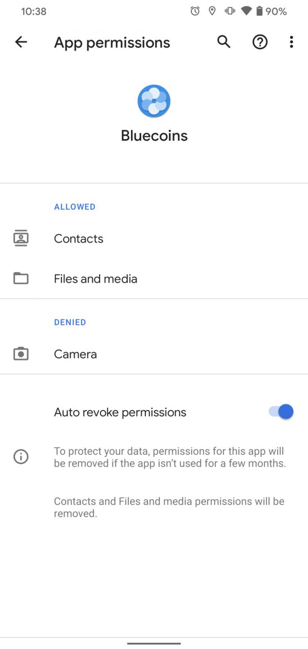 Android 11 DP3 引入了一个理念类似的小功能,在任意应用的权限管理页面底部,你会发现一个名为 Auto revoke permissions 的选项,根据选项描述,勾选这个功能后,目标应用所获取到的权限许可会在闲置数月不用后被自动撤销,避免用户早已忘记但应用依然在后台借助权限许可获取隐私信息的情况。