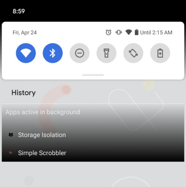 因此 Android 11 DP3 相较此前版本而言最大的变化也许应该是常驻通知可以被「划掉」了——不是真正的划掉没了,毕竟要是你把 USB 连接选项给划掉了找起来还得费点功夫——当我们「划掉」一则常驻通知时,通知中心里会出现一个设计风格还有些诡异的渐变式收纳盒,发出这些常驻通知的应用会以比通知更加简洁的样式收纳进来。