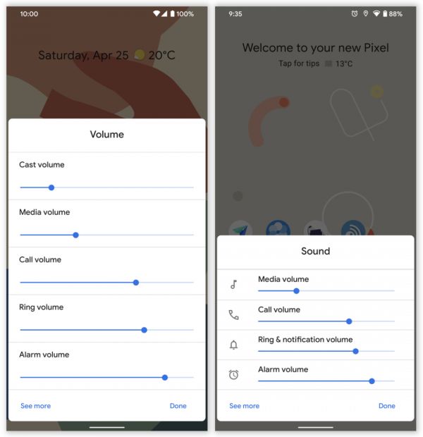 左:Android 10 正式版。右:Android 11 DP3