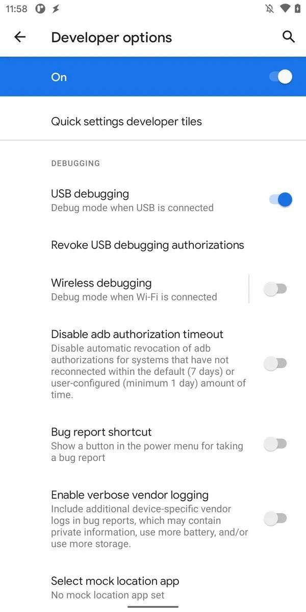 再比如以往可能会让玩机爱好者产生很多问号的 USB 调试授权问题,这次加入了「禁用 ADB 授权超时(Disable adb authorization timeout)」的选项,通过阅读选项说明我们才知道,原来 ADB 授权默认情况下会在未使用一段时间后自动撤销的,难怪每个月刷机都要重新授权……