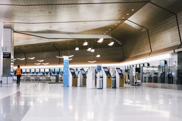 加利福尼亚国际机场的值机区,以前热热闹闹的机场现在空无一人 | 图片来自《纽约时报》