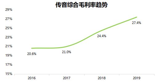 2019年,传音控股综合毛利率达到27.4%,较去年同期提升3个百分点,连续第三年保持提升态势。其中,手机业务毛利率较去年同比增加3.41个百分点,至27.68%。