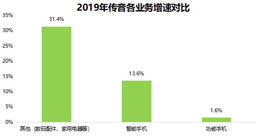 财报显示,2019年,传音主营业务中,包括数码配件、家用电器、互联网服务等在内的其他业务收入达到人民币9.763亿元,同比增长31.4%,营收贡献达到3.9%。是几大主营业务中增长最快的部分。