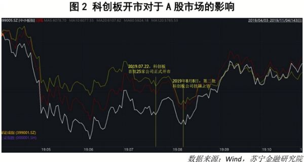科创板开市时同样如此,2019年7月22日科创板首批25家公司上市,以及随后的8月8日第二批科创板公司上市,也都没有对A股造成实质性影响(见图2)。