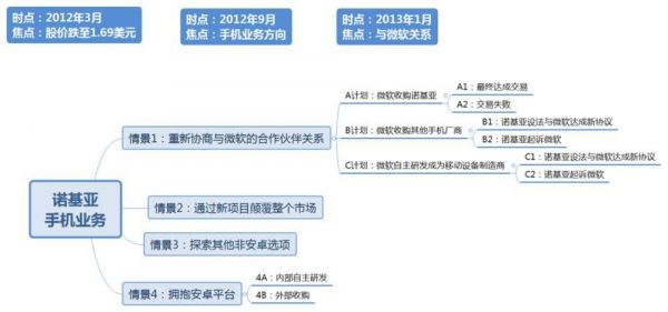 从诺基亚策划出售手机业务所采取的策略,以及与微软谈判中针对不同情景做出的改变,我们不难理解情景规划方法在企业重大战略决策和危机应对过程中的重要作用。