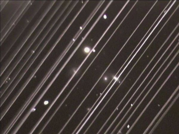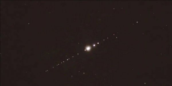 更有甚者,有的爱好者拍到这些卫星甚至有“闪光”的现象。在一段上传至网上的视频中,这个爱好者用自己的单反拍摄到了一长串卫星依次发生闪光,亮度超过了织女星。