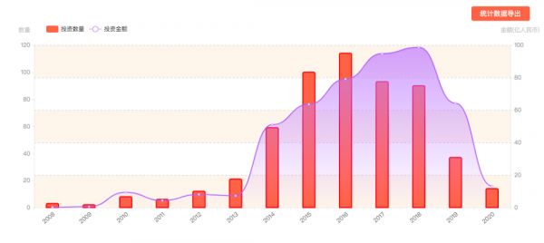 2008~2020年智能家居领域的投资数量与投资金额(数据来源:IT桔子)