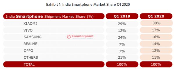 根据市场研究公司Counterpoint Research的数据,在第一季度,印度智能手机市场同比仅增长4%,略高于3100万部。由于新手机发布活动和积极的促销活动,印度在1月和2月的总出货量均出现了同比增长,但由于冠状病毒大流行,它在3月份的出货量下降了19%。