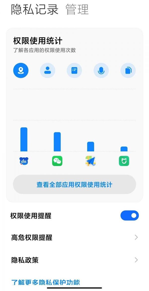 MIUI 12 的“照明弹”其实本身也不算是啥“突破性”功能,因为其他厂商的权限管理列表或者是某些第三方安全类的 App 也能做类似的事情。