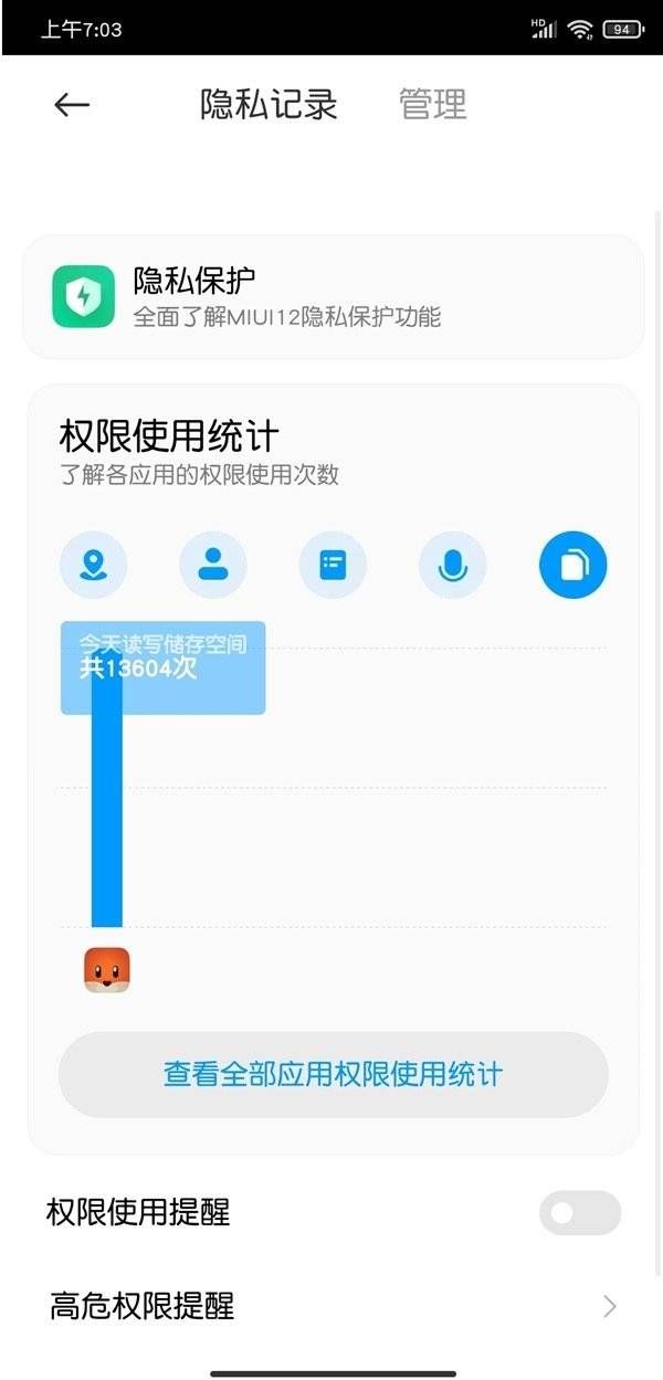 当点击“查看全部应用权限使用统计”以后,看到的记录还挺惊人的……