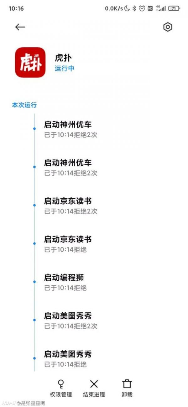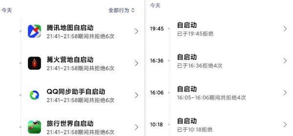 除了前面提到的疯狂调用某项权限和连带唤醒,差评君自己也找到不少 App 偷偷自启动被 MIUI 拒绝的情况。