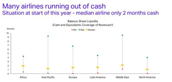 的确,对于航空业这一重资产行业而言,飞机停飞意味着公司在没有收入来源的同时必须支付飞机租赁等固定开销,是否能顺利度过疫情寒冬取决于航空公司的现金流状况。而IATA报告显示,平均状况下,全球航空公司手头只有2个月的现金流,状况好的能支撑半年左右,资金紧张的只能支持1个月。雷铮坦言,现金流短缺、财务表现不佳和融资能力差这3方面因素累加在一起,5月份会有更多航空公司倒闭。