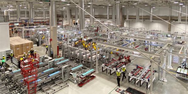 ▲特斯拉上海工厂电池模组组装车间