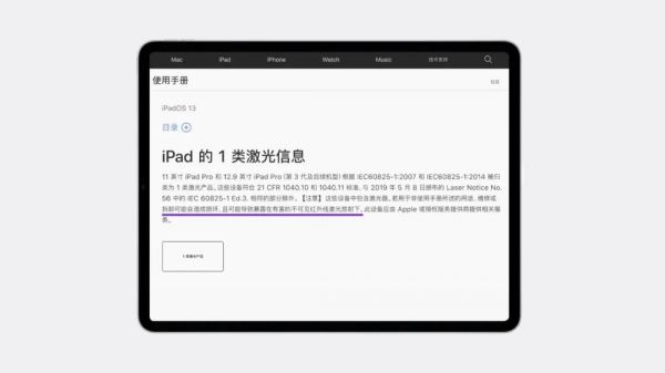 至于激光对人眼是不是有伤害,苹果在随附的提示中表示 iPad 为 1 类激光产品,符合 FDA 的标准。FDA 的官网中也提到「1 类激光辐射不被视为有害」。2 类以上就会被强制要求打一个提示 Logo 了。苹果也借此机会重申:别瞎拆,容易拆瞎。