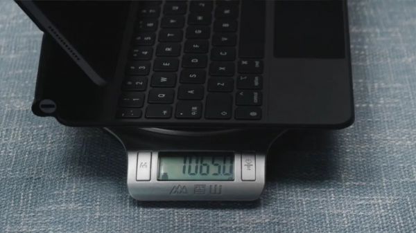 最关键的是重量的提升,11 寸版本键盘本身 600g 左右,比之前重了一倍。加上 iPad 整机重量超过一公斤,厚度超过 15 毫米,拿在手里能很明显感受到手腕上的分量。13 寸的版本则达到 1362g,干脆比 MacBook Air 更重。这根本就是笔记本的身材。
