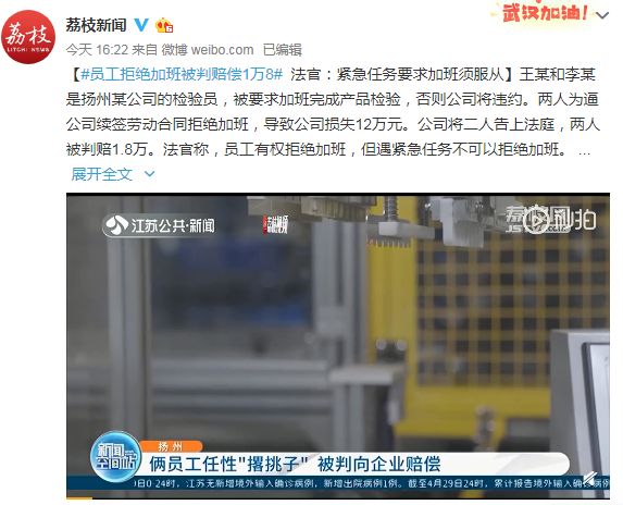 (原标题:网友炸锅!员工拒绝加班被判赔偿公司1.8万?法官:遇紧急任务不可拒绝加班……)