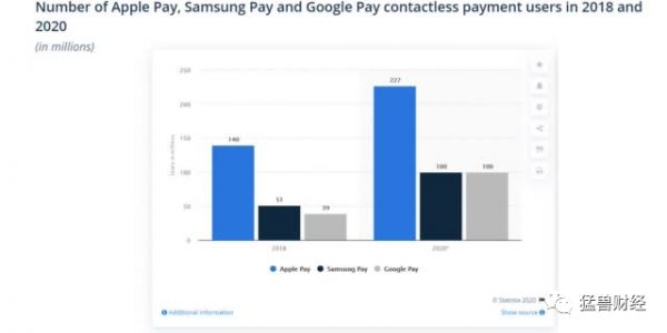 举例来说,越多的人使用Apple Pay,就会有越多的商家提供Apple Pay的支付方式,越多的商家提供Apple Pay,消费者也就越有可能使用Apple Pay,因为与其他服务相比,他们往往能够在更多的商店进行支付。尽管互联网支付服务的提供商当然也会在这个巨大的市场中分一杯羹,但苹果已经能够在绝对数字上超越三星支付和谷歌支付: