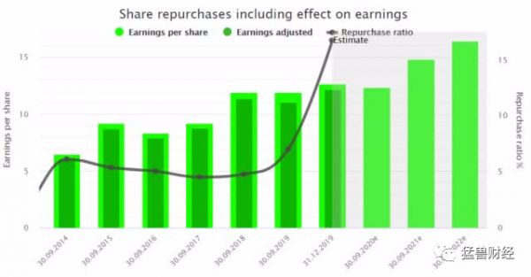 当然,投资者也从中受益。在2019年,苹果的股票价值增长了86%(不包括股息)。对苹果的投资者来说,今年是金融危机结束以来最好的一年。此外,自2008年以来,苹果股票只有两年出现了亏损;但四年来,年涨幅明显超过50%: