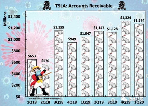 可能特斯拉在每个季度末都有大批量销售。众所周知,特斯拉每个季度都有3个月的强劲的销售业绩来实现其财务目标。由于新冠疫情对经济的影响,2020年一季度有所不同,所以2020年一季度特斯拉应收账款受到影响的可能性非常小。那么问题来了,这个应收账款究竟是多少?