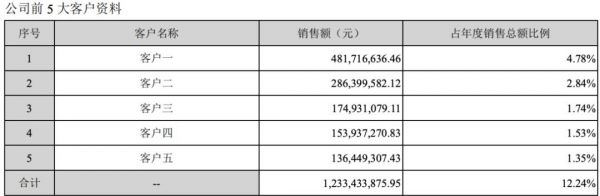 公告披露的五大客户中,中国移动及其下属公司为科大讯飞贡献了4.81亿,占年度销售额的比例为4.78%,安徽淘云科技有限公司及其下属子公司贡献了2.86亿元,占年度销售额比例为2.84%,前五大客户总计销售额为12.33亿,占年度总销售额的12.24%。