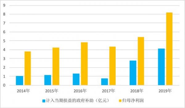 再来“解剖”一下利润构成,净利润增速51.12%虽够强劲,但其实背后的推力主要是政府补助。