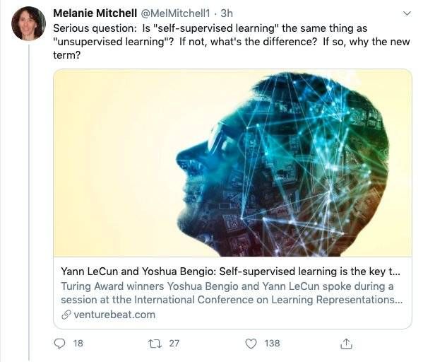 很多网友比较关注的一个问题是,自监督学习和无监督学习是一个意思吗?