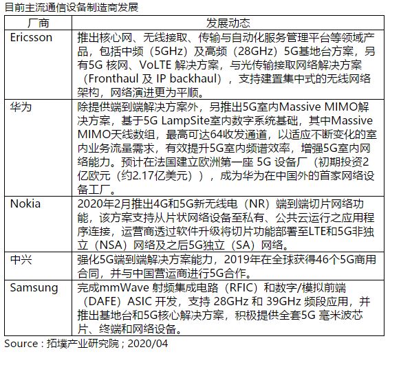 集邦咨询研究总监谢雨珊表示,华为、爱立信、诺基亚、三星、中兴等设备商当前都在积极推出端对端(end-to-end)解决方案抢攻市场,并持续提升网络功能与特性。