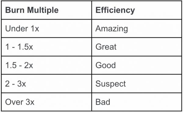 这将焦点直接放在资金消耗上,将资金消耗与收入增长挂钩进行评估。换句话说,创业公司每获得一美元的新增收益,要烧多少钱?